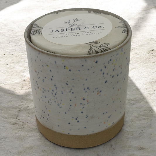 White Speckled Handmade Stoneware Refillable Candle Pot