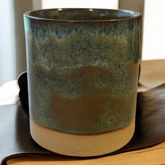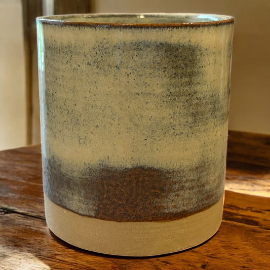 Blue, Green, Brown Stoneware Refillable Candle Pot