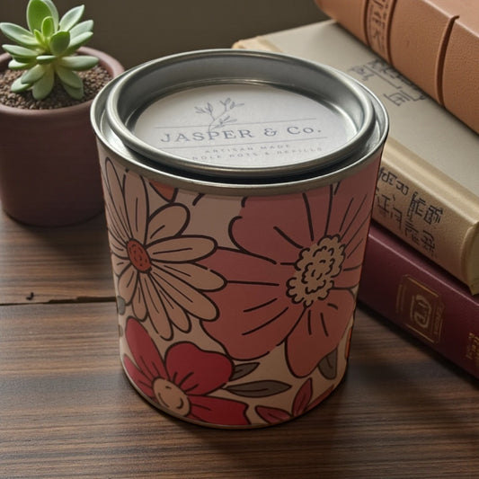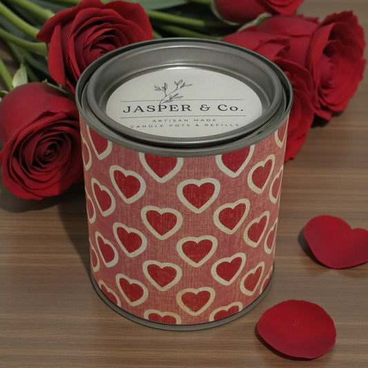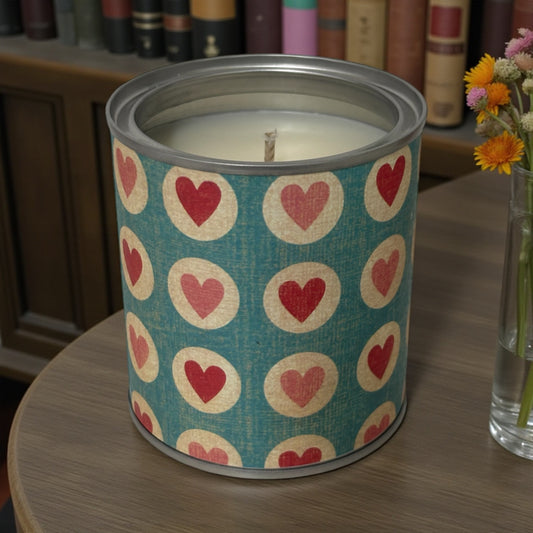 Heart Print Soy Wax Candle in Metal Tin | Hand-Poured, Vegan